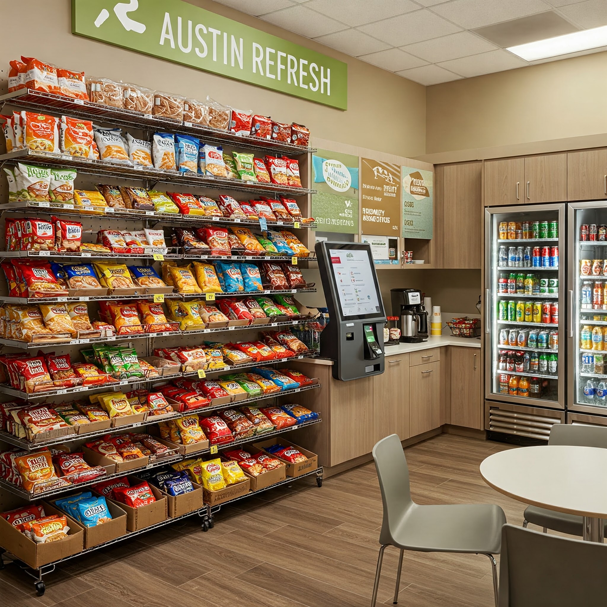 At Austin Refresh, we’re revolutionizing workplace snacking across the Austin Metro Area with AI-powered Micro Markets. Our self-serve, cashless shopping experience offers a wide selection of fresh meals, healthy snacks, and beverages—far beyond traditional vending. With 24/7 access, employees can conveniently enjoy the food they love, enhancing productivity and workplace satisfaction.